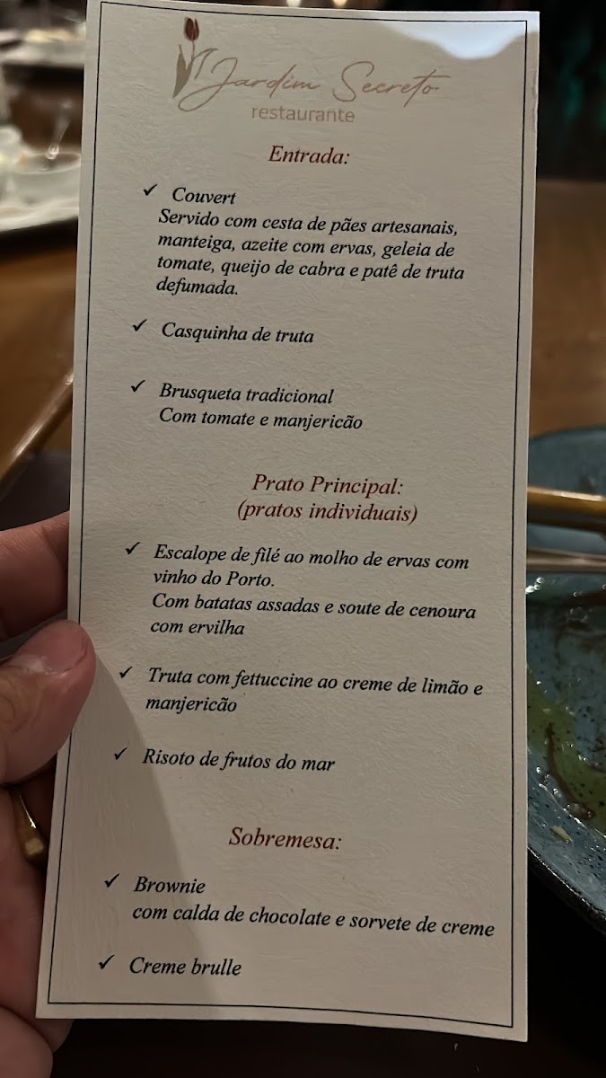 The restaurant complements its dishes with a carefully curated beverage list, including premium whiskeys like Black Label and Jack Daniels, as well as traditional Brazilian cachaças, enhancing the overall dining journey. Guests consistently praise the harmonious blend of flavors and the warm, attentive service amidst serene natural surroundings. Every bite at Jardim Secreto tells a story of culinary passion and respect for ingredients, making it a must-visit for those seeking exceptional cuisine in a peaceful setting.
